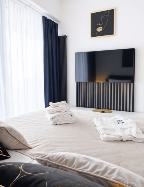 Zapraszamy do eleganckiego apartamentu w prestiżowej Hanza Tower w Szczecinie – idealnego miejsca na komfortowy pobyt z dostępem do basenu i balkonem z widokiem na miasto!